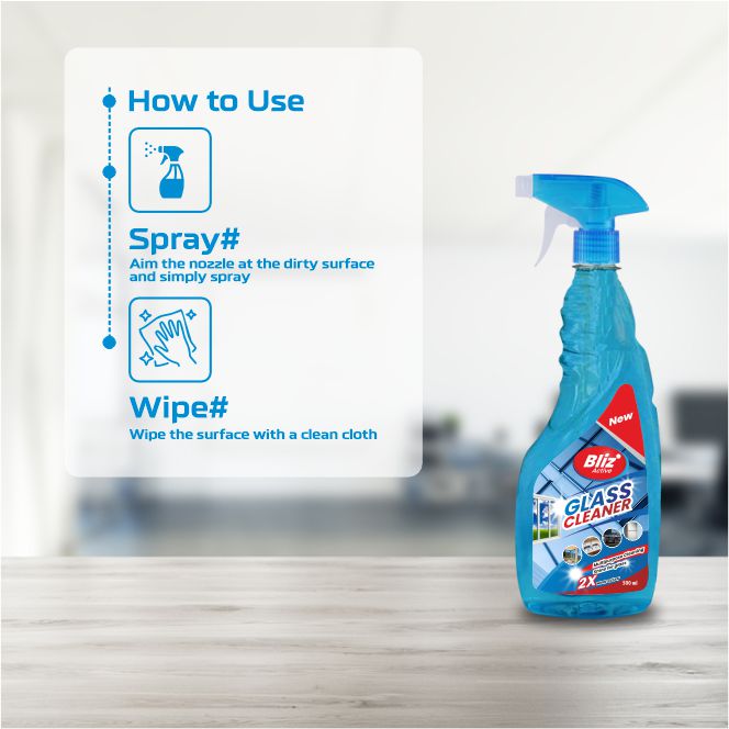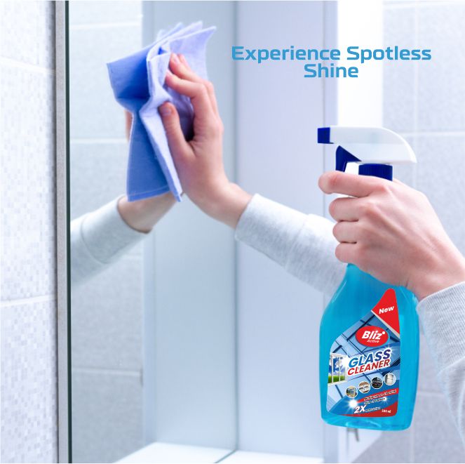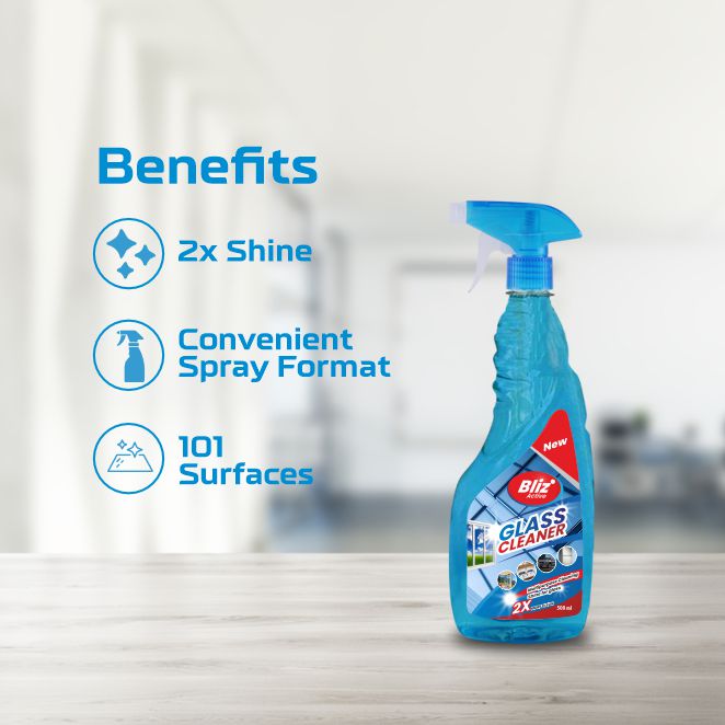 Bliz Active Glass Cleaner (500 ml) delivers a sparkling shine with its advanced 2X cleaning formula, specially designed for glass surfaces. This powerful cleaner quickly removes dust, fingerprints, smudges, and greasy marks, leaving windows, mirrors, and glass objects crystal clear and streak-free. The handy spray bottle ensures effortless application, making cleaning fast and convenient for home or office use. Experience spotless, gleaming results with every use and enjoy a refreshing fragrance that enhances your cleaning routine.