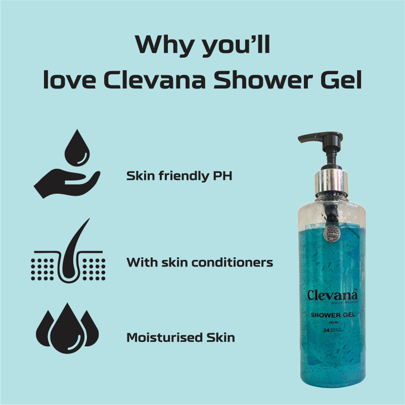 Clevana Aqua Breeze Shower Gel delivers an invigorating and revitalizing bathing experience with its fresh aqua fragrance and gentle cleansing formula. Enriched with hydrating components and subtle exfoliating beads, this shower gel effectively removes impurities while leaving your skin cool, soft, and refreshed. Its refreshing scent awakens your senses, making every shower a rejuvenating ritual. The convenient pump bottle offers easy usage and mess-free application for daily comfort and hygiene.