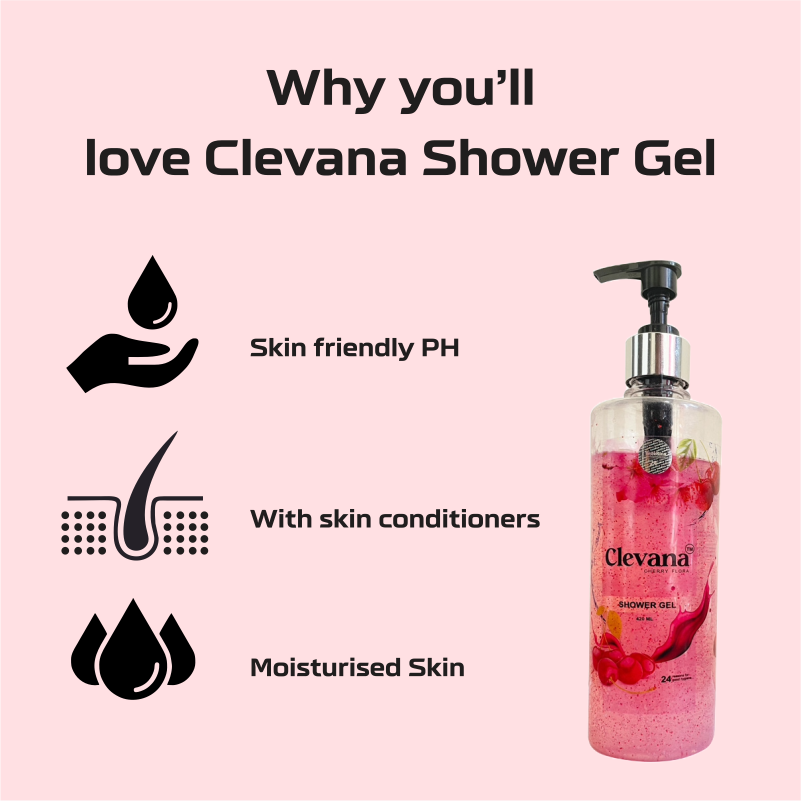 Clevana Cherry Flora Shower Gel is a luxurious body wash crafted to leave your skin feeling refreshed, hydrated, and delicately fragrant. Infused with cherry extracts and gentle exfoliating beads, this shower gel cleanses deeply while revitalizing your skin with every wash. Its rich lather and enchanting floral-cherry aroma create a soothing shower experience, making it perfect for everyday indulgence. The handy pump dispenser ensures easy and mess-free use, offering freshness and softness that lasts throughout the day